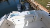 The Cobia 296 CC is designed big to handle any conditions Mother Nature throws its way. It also fishes big with twin 28 gallon livewells and a cavernous cockpit with flip down aft seating and two in-deck 64″ macerated fishboxes. All the lures, leaders and terminal gear you own will fit neatly into the tackle organizers in the leaning post and console and your dead baits will be kept fresh and ready for rigging in the two insulated boxes in the tackle station.