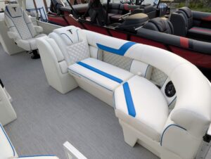 Standard Options: AQR Gate System, Twin Simrad NSX007 7″ Displays, NYTCRUZ (Automatic Nav/Anchor Light), Infinite Reclining High Back Helm Chairs, Waterproof Electrical Wiring Harness w/ Deutsch Connectors, Raised Logos, LED Docking Lights, Double Arm Hinges for Easy Access to Seat Storage, Exterior D-Rail Design on Rails’ Factory Installed Playpen Cover, Fuel / Water Separator, Full Rail Panels, Integrated Stainless Steel Cup Holders, Wireless Phone Charging & Mount, Stainless Steel Telescoping Ladder, Stern Stainless Steel Corners, Tilt Steering, Transducer Bracket on Port & Starboard Tubes, Integrated / Lighted USB-A , USB-C Charging, Vinyl Wrapped Furniture Bases, Wet Sounds Flush Mount MC-2 Source Head Unit, (4) Recon 6″ Wet Sound Purple Lighted Speakers, Wet Sounds Transom Remote, Stainless Steel Rail Braces, RGB LED Floor, Table & Seat Base Lights, Built in helm riser with binnacle arm, Chaise lid w/ folding billet arm rest